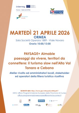 Martedì 21 aprile è in programma un momento di confronto con amministratori e stakeholder locali per avanzate nuove prospettive per l’alta val Tanaro e il CebanoSi è svolto lo scorso 14 aprile a Ormea, nella sala polivalente “Società Operaia 1889”, l’atelier territoriale promosso dalla Provincia di Cuneo nell’ambito del progetto “Paysage+ Aimable”: un momento di incontro e dialogo che ha riunito imprenditori, operatori economici e stakeholder locali per riflettere sul presente e immaginare il futuro del territorio dell’alta val Tanaro e del Cebano, in sinergia con il progetto.