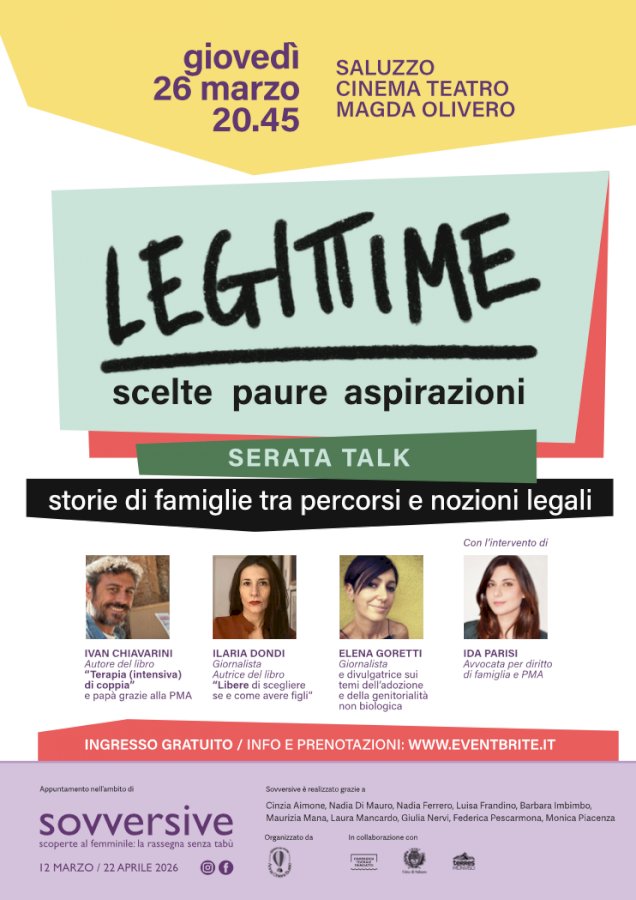 L’attenzione si sposta già sul secondo appuntamento della rassegna, la serata talk “Legittime – scelte, paure e aspirazioni”, in programma il 26 marzo sempre al teatro Magda Olivero alle 20.45.