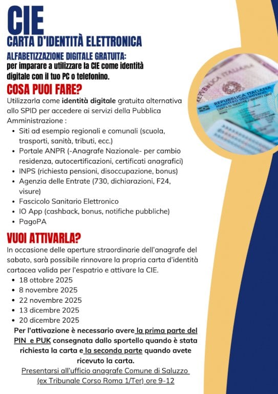 Saluzzo Saluzzo - Carta d'identità - Ufficio Anagrafe - Open day Cie