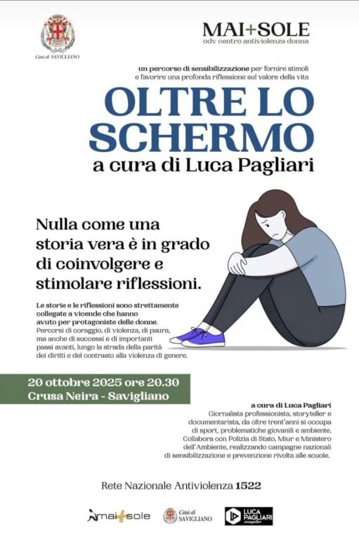 Lunedì 20 ottobre, alle 20.30 alla sala polivalente della Crusa’ Neira si avrà la preziosa opportunità di incontrare il giornalista storyteller Luca Pagliari, che, attraverso le sue video-storie vere e la sua esperienza in #cuoriconnessi, progetto nato dalla collaborazione con la Polizia di Stato, aiuterà ad aprire una finestra su questi mondi dolorosi, in un dibattito con il pubblico, provando a immaginare qualche risposta.