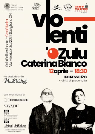 Domenica 12 aprile arriva nel Cuneese una data della tournée che vede protagonisti la voce e penna dei 99 Posse e la polistrumentista di NapoliLa Sala Polifunzionale della Crosà Neira, in via Misericordia a Savigliano, è pronta ad accogliere domenica 12 aprile, alle ore 18.30, una data della tournée Violenti, con protagonisti Luca ‘O Zulù Persicola, voce e penna dei 99 Posse, e la producer e musicista Caterina Bianco, impegnata nella ricerca audiovisiva con il collettivo Fanali e attualmente in tour con Tropico.