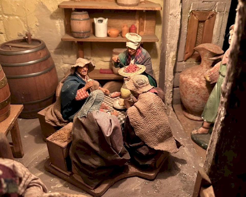 Non si tratta di una semplice rappresentazione: il presepe è il frutto di anni di lavoro, di una ricerca continua e di una cura minuziosa dei dettagli, pensati per emozionare e coinvolgere in una dimensione sospesa, quasi magica, dove la tradizione incontra la meraviglia. L’allestimento è progettato con un’attenzione speciale per i più piccoli: la particolarità più amata è che si può camminare dentro il presepe, attraversarlo ed esplorarlo, sentendosi parte della scena. Ed è proprio accompagnando bambini e ragazzi che anche gli adulti si ritrovano spesso a riscoprire lo stupore dell’infanzia, tra scenari capaci di parlare al cuore. Di anno in anno, nuove ambientazioni arricchiscono l’opera, con un dialogo armonioso tra il racconto sacro e scorci del paesaggio locale, a testimonianza di un legame profondo fra spiritualità e territorio.