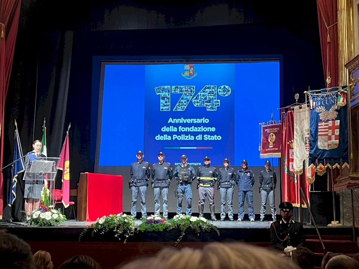 Nell'anniversario della fondazione presentati i dati dell'attività dell'ultimo anno in provincia di Cuneo: 137 mila persone controllate, 106 arresti della Mobile, 12 denunce per pedopornografia“Sono profondamente emozionata di essere qui come questore della provincia Granda. Il fatto che sia il Teatro Toselli ad ospitare questo momento è testimonianza del legame consolidato dell'istituzione con la città”. Così il questore di Cuneo Rosanna Minucci ha aperto stamattina, venerdì 10 aprile, il suo intervento durante le celebrazioni per il 174° anniversario della fondazione della Polizia di Stato. La mattinata si era aperta in Questura, con l’onore ai caduti e la deposizione di una corona di fiori sulla lapide commemorativa.