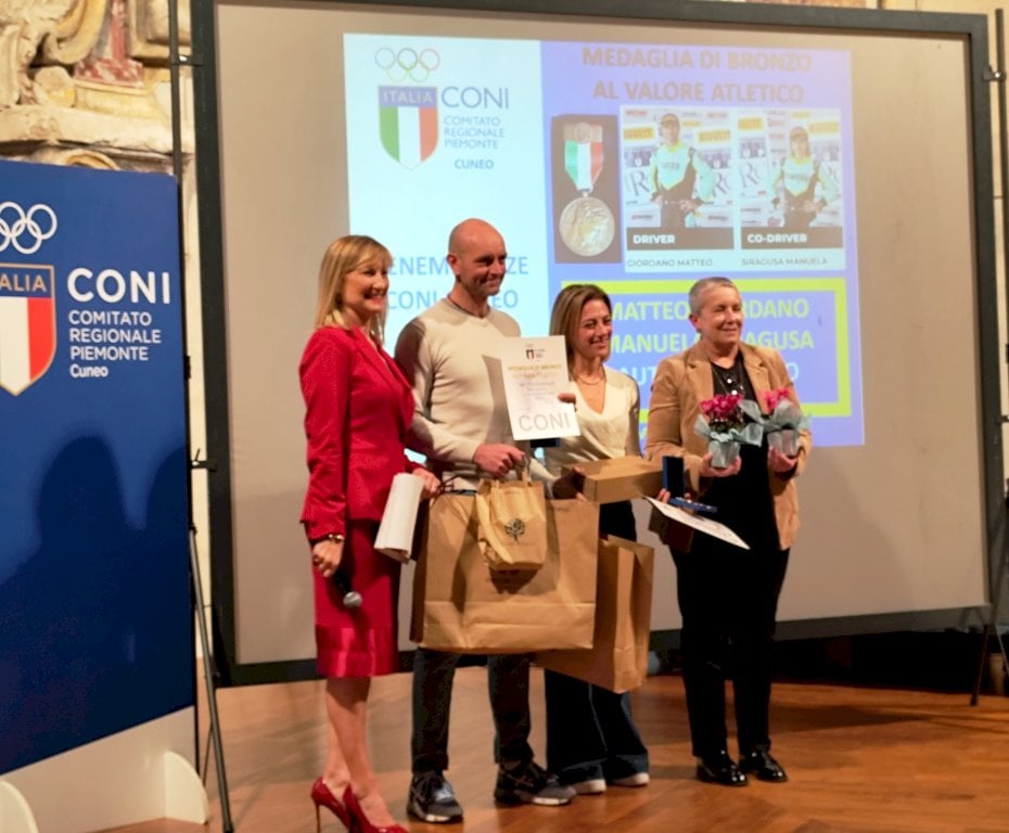 Manuela e Matteo, pochi giorni prima della gara ligure, sono stati premiati dalla sezione di Cuneo del CONI, con cerimonia in Sala San Giovanni anche alla presenza della sindaca Patrizia Manassero (con loro in foto), nel contesto delle benemerenze per i risultati sportivi acquisiti nel corso dell'anno solare 2023.