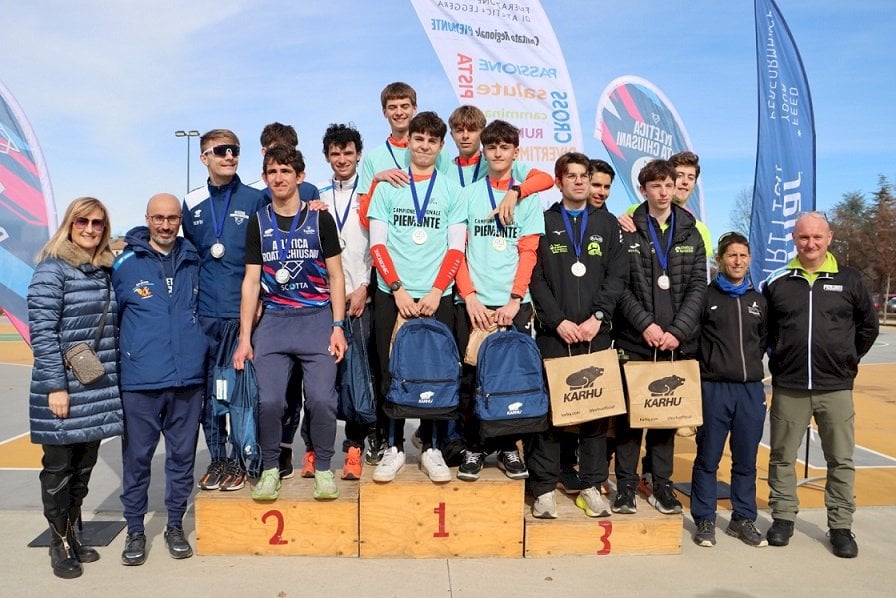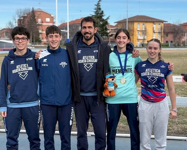 Per l’Atletica Roata Chiusani sono arrivati tre titoli regionali staffette Master 4x2000: nella Master Uomini SM45 (seconda formazione assoluta nella prova Master) con Massimo Galliano, Maurizio Morello, Danilo Brustolon, Enrico Aimar; nella Master Donne SF55 (6^ formazione nella prova femminile) con Cristina Frontespezi, Silvia Di Salvo, Francesca Donalisio, Cinzia Tomatis; nella Master SM55 Uomini con Guido Castellino, Flavio Gancia, Silvio Gastaldi, Luca Laratore. Quinta piazza in categoria SM40 per Floriano Roà, Roberto Alfonsi, Vittorio Rossetti, Davide Preve. Molto bene anche gli atleti roatesi nella prova 4x2000 Assoluti: 2° posto per la formazione composta da Pietro Alluto, Tommaso Fogliatto, Alberto Ferrere, Alessandro Cena; 9° posto per Davide Dutto, Andrea Mandrile, Francesco Godano, Alberto Reineri; 14° per Leonardo Morello, Simone Italia, Pietro Belmondo, Cristian Conte. Nella prova Cadette, 3x1500, ben piazzato il terzetto formato da Margherita Chiaffrino, Arianna Gianelli e Camilla Garello, nella prova Ragazze, 3x1000, bene le formazioni di Francesca Amenta, Susanna Bruno, Anna Molineris e di Giulia Olivero, Anna Ghibaudo, Emma Margherita Peano. Nella categoria Ragazzi si classificano Roberto Villa, Matteo Lingua, Niccolò Boscaro. Molto bene Arianna Meinero ed Elena Baudena, 1^ e 2^ classificata nella prova individuale donne sui 2 km, 4° posto uomini per Vincenzo Maio, bene Giovanni Battista Peano e Francesco Davico. Secondo posto per Andrea Ballario, individuale 1500m Cadetti, 3° Tommaso Gianelli nei 1000 Ragazzi.