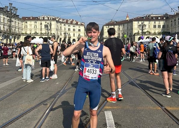 Risultati di rilevo per i portacolori dell’Atletica Roata Chiusani, in gara a Torino sulla 10 km e sulla mezza maratona di domenica 19 aprile. Sui 21,197 km della mezza maratona ottimo esordio sulla distanza per Pietro Belmondo, al traguardo in 1h20’47’’, 39° assoluto e 2° JM. Molto bene anche Alberto Ricci (1h31’50’’), Lorenzo Boscaro (1h41’26’’), e Lorenzo Canata. Nella prova sui 10 km Cristian Conte, 17° assoluto, sigla il personale in 35’10’’, Vittorio Rossetti chiude in 40’23’’.