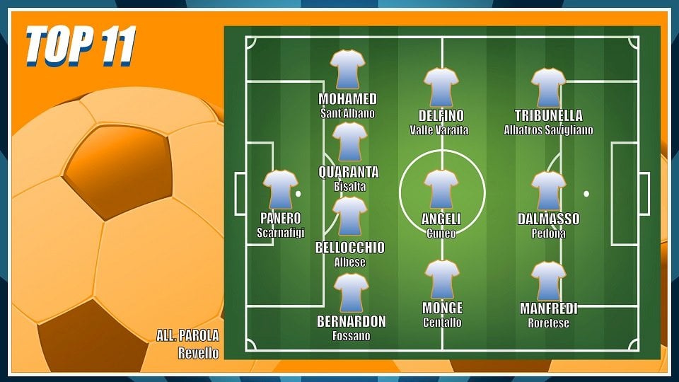 La Top 11 di questa settimana schiera tra i pali Enrico Panero, giovane portiere dello Scarnafigi (Promozione) che ha blindato il pari sul campo dell’Atletico Racconigi parando nel finale un calcio di rigore a Vailatti. In difesa sistemiamo il laterale del Fossano (Eccellenza) Simone Bernardon, protagonista di una gara attenta con i blues vittoriosi ad Acqui, e dall’altra parte il giovane Yasine Mohamed, che si è preso la scena con una splendida doppietta che ha regalato al Sant’Albano (Promozione) il prestigioso successo sulla Saviglianese. Al centro, a completare il reparto la solidità di Andrea Bellocchio, che oltre a blindare la difesa dell’Albese (Eccellenza) ha anche realizzato il gol che ha aperto le marcature contro il Chieri, e quella di Matteo Quaranta, leader difensivo del Bisalta che ha confermato il primo posto in Prima Categoria dopo la vittoria contro il Salice.