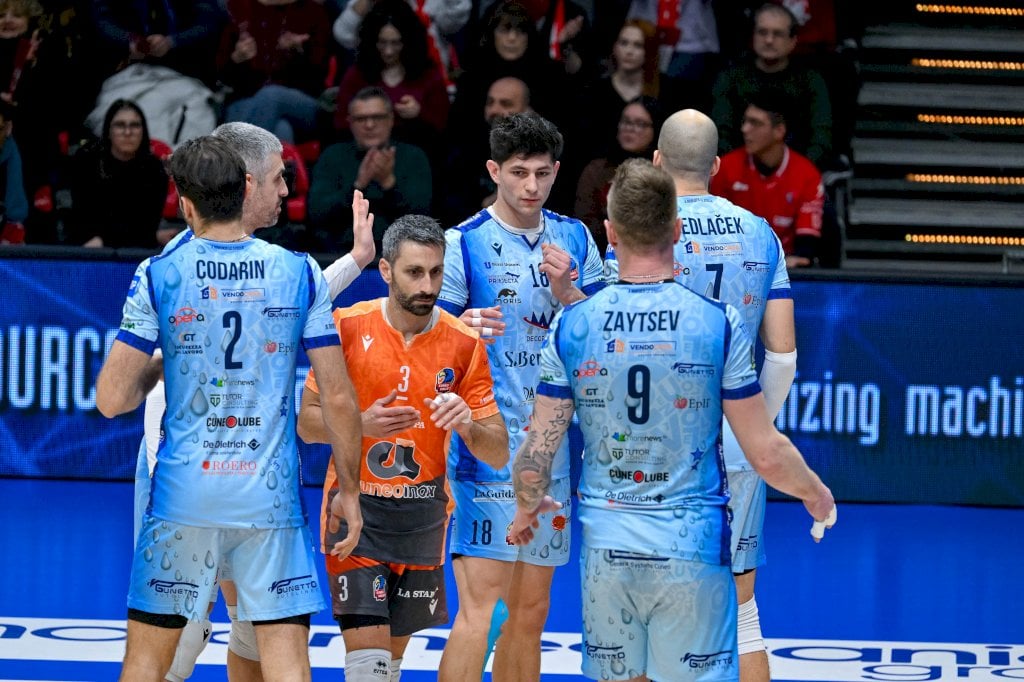 MA Acqua S.Bernardo Cuneo: Baranowicz, Feral 9, Codarin 5, Copelli 3, Sedlacek 10, Zaytsev 8; Cavaccini (K) (L1); Stefanović, Strehlau, Bonomi, Cattaneo. N.e. Oberto, Sala, Giraudo (L2).