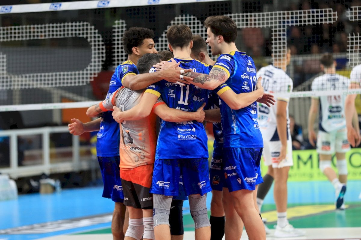 Se il primo set è a totale conduzione dei trentini, il secondo vede i cuneesi avanti nel finale sino al 22-24, tuttavia Sbertoli e compagni recuperano e chiudono ai vantaggi (26-24). Nel terzo parziale il muro gialloblù torna ad imporsi e nonostante gli unici due ace siano firmati da Codarin, ex di giornata omaggiato del tributo trentino consegnato da Riccardo Michieletto prima dell’inizio del match, ad aggiudicarsi set e gara sono i padroni di casa.