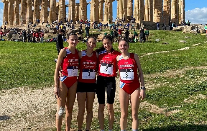 Quella svoltasi sabato 21 e domenica 22 febbraio presso il parco archeologico di Selinunte, vicino a Trapani, è stata una vera e propri festa del cross: due bellissime giornate di sport e con tante gioie per l’Atletica Mondovì, in un contesto paesaggistico davvero splendido, con i templi greci a fare da cartolina. Gare per tutte le categorie a partire dai Cadetti, in una competizione riservata alle rappresentative regionali in cui il Piemonte ha dominato sia tra i maschi che tra le femmine, confermandosi per il terzo anno consecutivo al primo posto. Gare clou, ovviamente, quelle degli Assoluti, con gli azzurri Nadia Battocletti e Osama Zoghlami laureatisi campioni italiani. Si è aperta sabato con le staffette — formazioni “regolamentate”, cioè composte obbligatoriamente da un atleta U16, uno U18, uno U23 e un assoluto — e l’Atletica Mondovì Acqua S. Bernardo ha colto una bella 7ª piazza con le sue donne Alice Botto, Yasmine Lazouzi, Elisa Calandri e Giulia Paolin, che hanno chiuso in 31’’53’’, a 1’51’’ dal podio dominato dal CUS Perugia (Baiocco, Caligiana, Ribigini e Fracassini), prime sull’Atletica Milardi