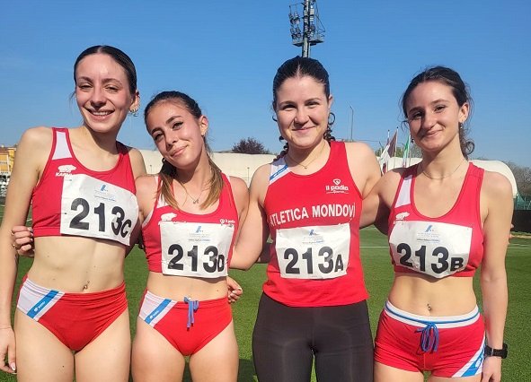 Il quarto titolo assoluto è “rosa” con Soraia Cillario, Sofia Dante (dall’Atletica Cairo), Elisa Calandri e Alice Rosa Brusin che chiudono la 4x1500 metri con 20’06”14 con ampio margine davanti a Alessandria e Siport Fiat. “Solo” bronzo per la 4x100 femminile composta da Alice Boasso, Rebecca Roà, Tiziana Traverso e Rachele Torchio in 47”68 dietro alla Safatletica (titolo con 46”46) e Novatletica Chieri 47”35. Ottime seste assolute, ma prime delle Allieve Sofia Musso, Noemi Bertone, Alice Botto e Sofia Bertone che si confermano in 48”72. 14ime e terze Junior Anna Boero, Giulia Fresia, Matilda Rovere e Anna Mamiedi 51”28, a 31 centesimi Caterina Lingua, Francesca Paolin, Chiara Rabezzana e Beatrice Dotta e più indietro Chiecchio, Priola, Sito e Baudissone (53”78). Bronzo Allievi nella 4x1500 con Simone Bongiovanni, Manuel Surriano, Matteo Garelli e Giorgio Comino in 18’54”83.
