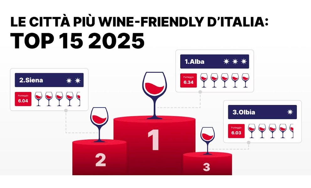 Lo rivela una ricerca di Press Release Hub. La seguono sul podio Siena al secondo posto e Olbia al terzoLa società Press Release Hub ha reso noti i risultati della ricerca sulle quindici migliori città wine-friendly d’Italia: Alba si è aggiudicata il primo posto, seguita da Siena al secondo e da Olbia al terzo.