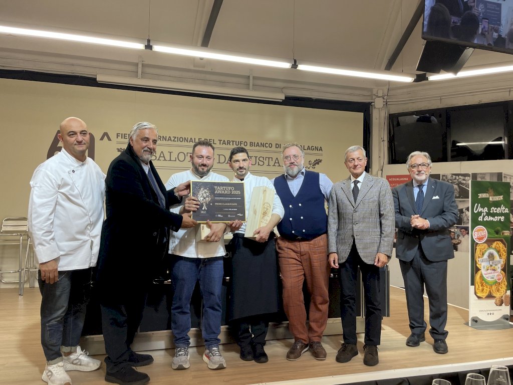Durante la fiera internazionale marchigiana è stato lo chef Massimo Carleo a conquistare la Giuria con uno speciale ramen di spaghetti alla chitarraLa città di Alba conquista la vittoria ex aequo con Acqualagna nella 3ª edizione dei Tartufo Awards, la sfida nazionale che celebra la creatività degli chef e l’eccellenza del tartufo bianco italiano, ospitata nell’ambito della 60ª Fiera internazionale del Tartufo Bianco del comune marchigiano.