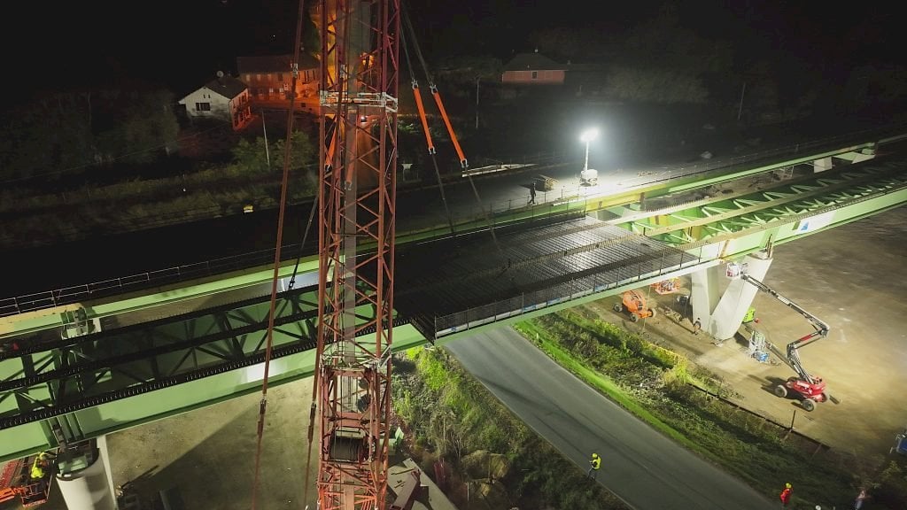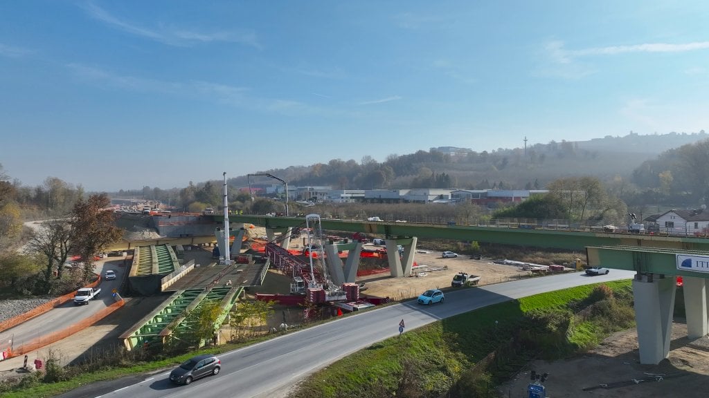 Le operazioni nella notte tra il 10 e l'11 novembre. Nel frattempo avanzano le opere di finituraNella notte tra il 10 e l’11 novembre è stato varato il secondo impalcato metallico del viadotto dell’autostrada A33 sulla provinciale 7, a Verduno in direzione Cuneo. Con una luce di 50,10 metri e un peso complessivo di circa 220 tonnellate, l’impalcato preassemblato a terra è stato sollevato da una gru da 800 tonnellate e posizionato mediante una lenta rotazione in quota. Come per il primo varo, l’elemento è stato installato con le predalles metalliche già montate, al fine di ridurre al minimo le interferenze con la viabilità nelle successive fasi di completamento.