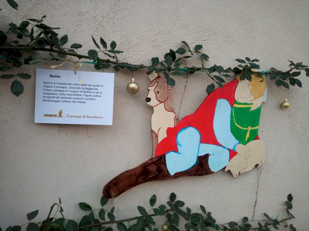A dare ulteriore energia al progetto è stato il nuovo gruppo di abitanti appassionati di hobbistica, nato lo scorso anno e subito protagonista nell’ideare e realizzare decorazioni originali. L’intero paese si è messo in gioco: alcune famiglie del centro storico hanno allestito ingressi, portoni, cortili e finestre a tema Natale, ampliando il percorso e trasformando via Umberto I in una passeggiata di luci e piccoli scorci da scoprire. Da questo intreccio di mani e idee è nato il “Presepe di Bossolasco”, allestito nel cuore del borgo, in via Umberto I, tra le rose in riposo invernale e visitabile fino a gennaio. Lungo il percorso si incontrano figure in legno che raccontano la vita rurale di un tempo e i personaggi della tradizione piemontese: Gelindo con Alinda e la figlia Aurelia, il pastorello dormiente Benino, ma anche il panettiere, il vinaio, la venditrice di castagne, il pescivendolo, l’Ancioè (venditore di acciughe) e il venditore d’aglio, tutti ritratti nel gesto del loro mestiere quotidiano.