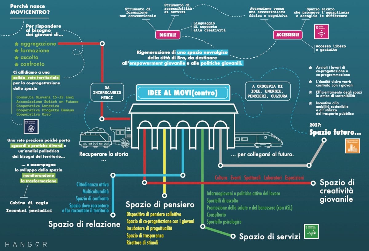 “Il cammino di Idee al Movi(centro) è nato da una precisa richiesta territoriale, espressa dalla Consulta giovanile di Bra, di spazi adeguati e gratuiti dove dialogare, creare, generare – ha spiegato il sindaco Gianni Fogliato -. Come Amministrazione, abbiamo convidiso l’obiettivo, affidando ai futuri fruitori e alle realtà che con loro quotidianamente operano la progettazione attiva di questo luogo, fatto da e per i giovani. Il percorso che ne è nato, in collaborazione con Hangar Piemonte e i nostri partner, è sinergico e strategico, capace di portare al Movicentro, ma anche all’intera città, valore culturale, sociale e territoriale”. Hanno partecipato alla restituzione pubblica rappresentanti di Hangar Piemonte e dell’Amministrazione comunale di Bra, oltre a diversi stakeholders territoriali.
