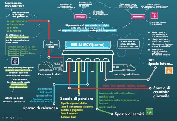 Il 27 e 28 gennaio il Comune e Hangar Piemonte hanno condiviso il percorso del piano che vede protagonista la struttura di piazza Caduti di NassiriyaDue giorni per progettare, approfondire e raccontare: è successo il 27 e 28 gennaio a Bra, negli spazi del Movicentro, dove il Comune di Bra e Hangar Piemonte hanno condiviso il percorso del progetto “Idee al Movi(centro)”, che vede protagonista la struttura di piazza Caduti di Nassiriya quale futuro polo di aggregazione giovanile.