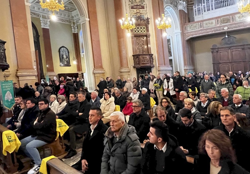 A prendere parte al momento di riflessione e preghiera è stata una folta rappresentanza di soci Coldiretti, con il Presidente provinciale Enrico Nada, il Direttore Francesco Goffredo, il Delegato provinciale Giovani Impresa Marco Bernardi, la Responsabile Donne Coldiretti Monia Rullo, il Presidente dell’Associazione provinciale Pensionati Romano Ficetti, insieme a tutti i Presidenti e ai Segretari di Zona.