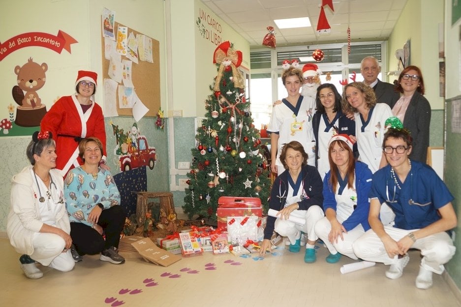 Presente una rappresentanza di medici, infermieri ed oss, capeggiati dalla Dottoressa Antonella Ligato della Direzione Aziendale, il presidente ANLA Sergio Gazzano e Giorgia Giatti della Cacao Viaggi. Babbo Natale e la sua assistente hanno consegnato i doni ai bambini ricoverati passando in ogni camera, regalando qualche attimo di felicità ai piccoli ospiti.
