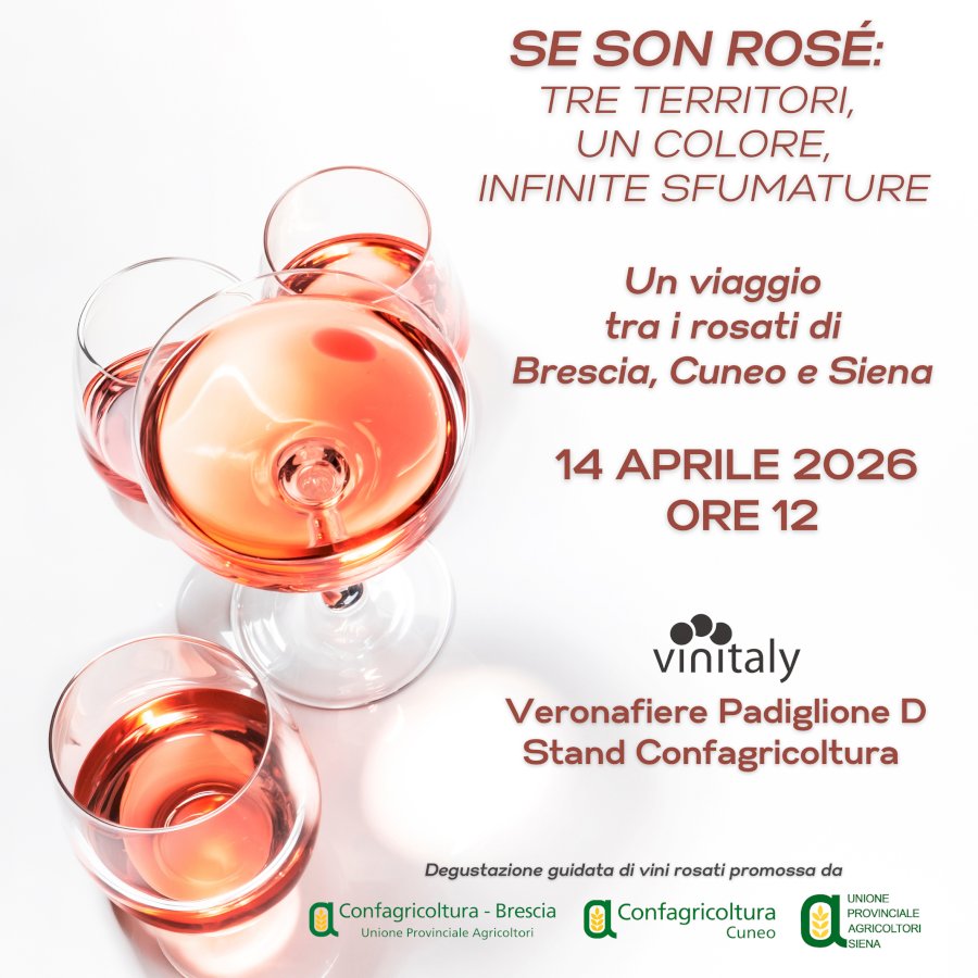 La degustazione guidata offrirà al pubblico un’esperienza sensoriale capace di raccontare, attraverso un unico colore, la ricchezza e la diversità dei territoriMartedì 14 aprile, alle 12, presso lo stand di Confagricoltura al Vinitaly di Verona (Padiglione D), si terrà l’evento “Se son rosé: tre territori, un colore, infinite sfumature”, organizzato da Confagricoltura Cuneo, Confagricoltura Brescia e Unione Provinciale Agricoltori di Siena. Un viaggio tra identità e sfumature del vino rosato: è questo lo spirito della degustazione guidata che metterà a con-fronto le interpretazioni del rosé di tre importanti aree vitivinicole italiane – Cuneo, Brescia e Siena – offrendo al pubblico un’esperienza sensoriale capace di raccontare, attraverso un unico colore, la ricchezza e la diversità dei territori. A moderare l’incontro sarà, come nelle precedenti edizioni, la narratrice digitale e sommelier Adua Villa, che accompagnerà i partecipanti in questo percorso tra calici e storie di produzione.