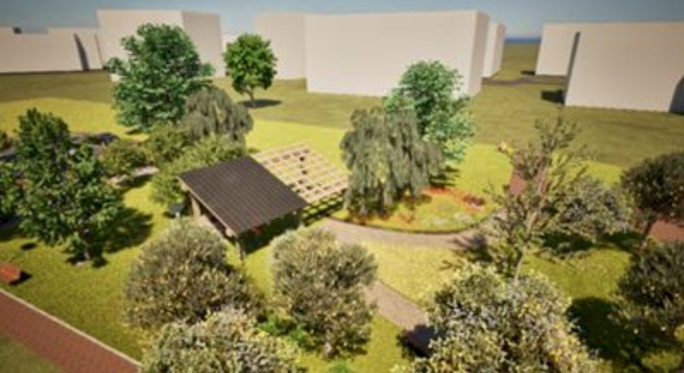 In particolare, il progetto prevede la trasformazione di una porzione di strada in via Leonardo Ferrero oggi asfaltata, in un nuovo giardino urbano a servizio del quartiere, con più di 30 nuovi alberi, arbusti, prati, collinette verdi, aiuole fiorite, un’area dedicata alle erbe aromatiche e un orto didattico. Sarà predisposto un sistema di recupero delle acque piovane provenienti dal tetto della scuola primaria e dallo scarico della fontana pubblica, che saranno riutilizzate per l’irrigazione del nuovo parco. Completeranno l’intervento percorsi pedonali a fondo drenante, l’installazione di panchine e arredi, pergolati verdi, il sistema di illuminazione e la predisposizione per la videosorveglianza. Il risultato sarà l’eliminazione del traffico veicolare di attraversamento, e la de-impermeabilizzazione di oltre il 90% della superficie interessata, pari a circa 1.400 metri quadrati. Accanto alle opere fisiche, il progetto includerà azioni educative e informative, con attività didattiche rivolte alle scuole del quartiere e materiali divulgativi dedicati al valore del verde urbano.