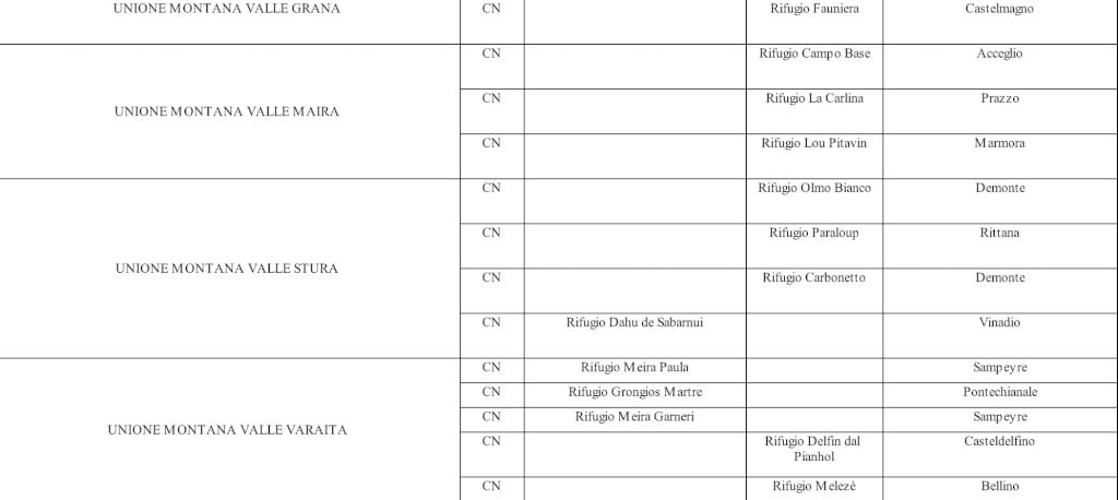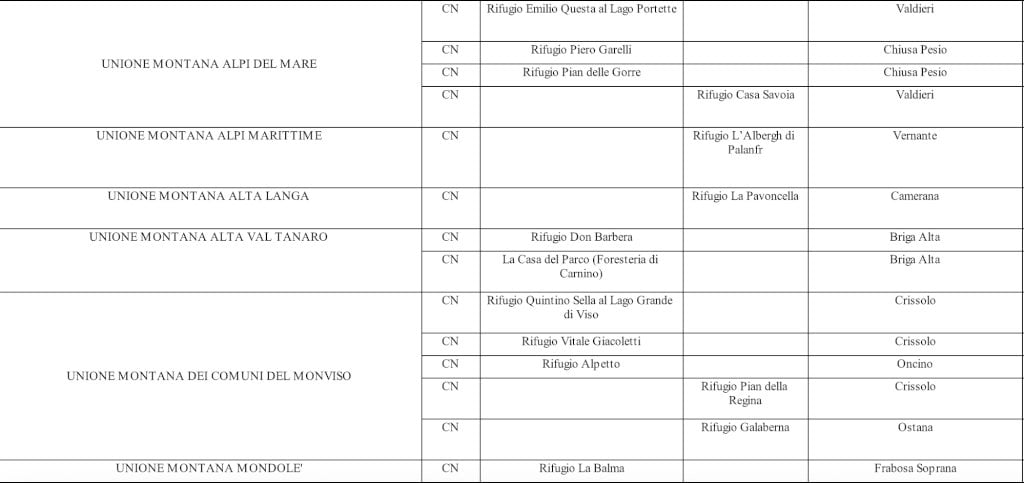 Sono 27 i rifugi della provincia di Cuneo che riceveranno un dispositivo. Di seguito l'elenco.