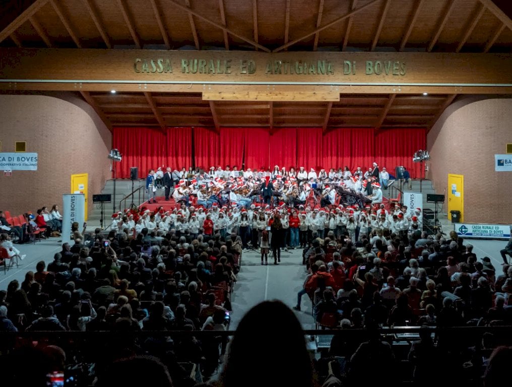 Durante la serata anche la premiazione degli alunni meritevoli tra i soci e tra i figli dei sociGrande successo anche quest’anno per l’evento organizzato dalla Banca di Boves giovedi’ 18 dicembre al Palazzetto “C. Giraudo”, confermatosi anche quest’anno un appuntamento capace di unire musica, comunità e valori condivisi. Una serata intensa ed emozionate che ha visto la partecipazione di un pubblico numeroso e coinvolto. Sul palco si sono esibiti gli allievi dell'Istituto A. Vassallo di Boves, portando in scena armonie natalizie e brani dedicati alla gioia e alla condivisione. Un momento speciale in cui la freschezza e l’entusiasmo di questi giovani sono diventati il cuore della serata, trasmettendo tutto lo spirito delle feste.