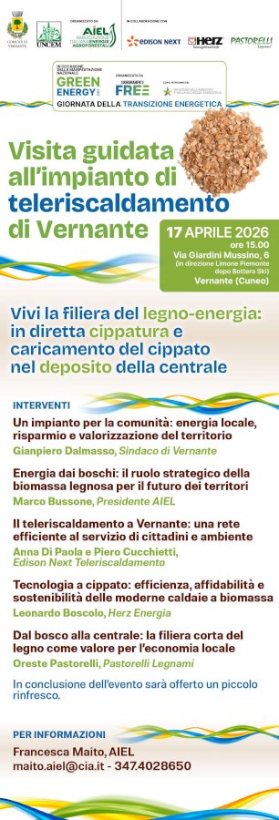 Un’iniziativa aperta a studenti, cittadini e istituzioni per osservare da vicino un sistema energetico basato su risorse locali che unisce risparmio, decarbonizzazione e sicurezza energeticaVenerdì 17 aprile Aiel-Associazione Italiana Energie Agroforestali, in collaborazione con il Comune di Vernante ed Edison Next, società del Gruppo Edison che accompagna aziende e pubbliche amministrazioni nel percorso di decarbonizzazione, sostenendo la competitività dell’industria e restituendo valore ai territori, invita studenti, cittadini, istituzioni e comunità locali a Vernante, in provincia di Cuneo, per una visita guidata all’impianto di teleriscaldamento a biomassa del Comune e per scoprire come una risorsa ampiamente disponibile nel territorio come la legna possa trasformarsi in energia rinnovabile a servizio della comunità.