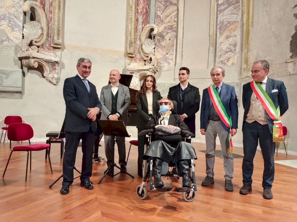 C’è anche lei in sala San Giovanni a Cuneo, insieme al marito Luigi e ai figli Leonardo e Camilla che l’hanno accompagnata in ogni passo, anzi in ogni battito di ciglia, in questi ultimi vent’anni. Da quando la braidese di origini liguri, all’epoca insegnante e neomamma per la seconda volta, fu colpita da un’emorragia cerebrale post-partum che la lasciò in stato vegetativo. Ci vollero sei mesi prima che ci si rendesse conto che dietro alla corazza di un corpo immobile c’era una mente ancora vigile: la chiamano sindrome del chiavistello, in inglese locked-in syndrome, una condizione medica rarissima e spaventosa.