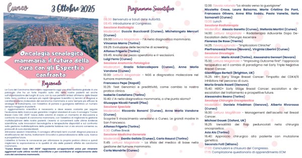 Il congresso ha visto la partecipazione di esperti nazionali e internazionali, tra cui Michael Douek dell’Università di Oxford, e ha rappresentato un momento di confronto e aggiornamento sulle prospettive della cura del carcinoma mammario.