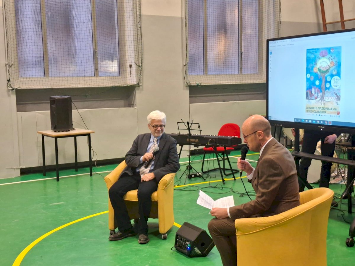 Lo stesso preside Parola ha poi dialogato con Gianluca Cuniberti, monregalese, eminente professore di lingue classiche e dall’anno scorso prorettore dell’Università di Torino. La chiacchierata, dal titolo “Humanitas”, ha toccato alcuni dei temi fondamentali che caratterizzano ancora oggi il liceo classico, come l’importanza di studiare materie umanistiche in un mondo che richiede per lo più competenze tecniche e in generale l’apertura al ragionamento critico che presuppone l’iscrizione a questa scuola. Cuniberti ha sottolineato poi come l’andare indietro, studiando appunto i classici greci e latini possa essere una palestra e un antidoto molto importante in tempi incerti come quelli che sta attraversando la nostra società e che ovviamente preoccupano in particolare i giovani, siano essi liceali o universitari. Imbeccato poi sul calo di iscrizioni sia al liceo classico (dimezzate negli ultimi quindici anni a livello nazionale) sia all’università (con l’Italia tra i fanalini di coda a livello europeo per numero di laureati), il prorettore di UniTo ha commentato come i licei prima e le università pubbliche poi, continuino a costituire dei veri e propri presidi culturali e di inclusività, in grado di formare con cura i giovani e fornire loro strumenti che vanno al di là della semplice sfera educativa.