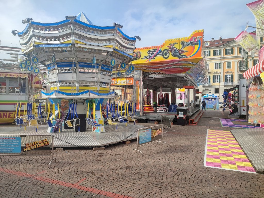 In piazza Galimberti sono arrivate le giostre (e ora si attende la neve)