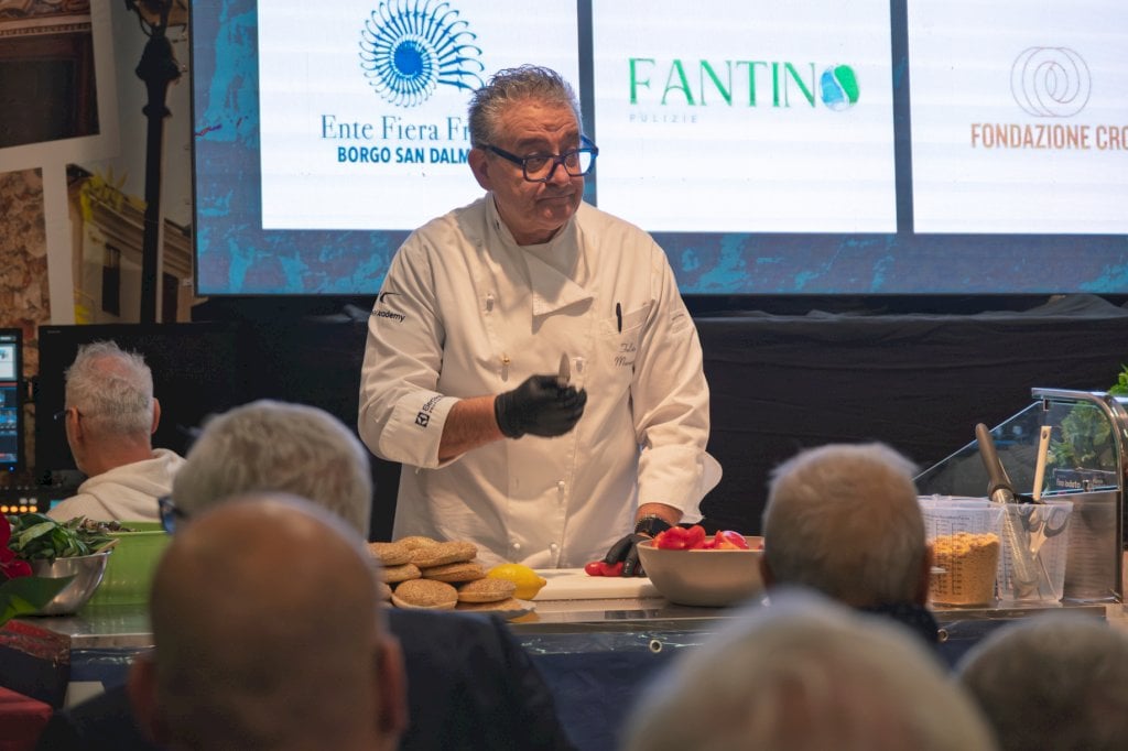 Poco dopo, l’avvio istituzionale della fiera ha portato in scena lo chef Fulvio Marengo, protagonista dell’area cooking, affiancato da un’ampia partecipazione di politici e rappresentanti istituzionali che si sono alternati sul palco a portare i loro complimenti alla sindaca Roberta Robbione, all’intera amministrazione e all’Ente Organizzatore della Fiera, sottolineando la grande importanza di questo evento per la valorizzazione del territorio.