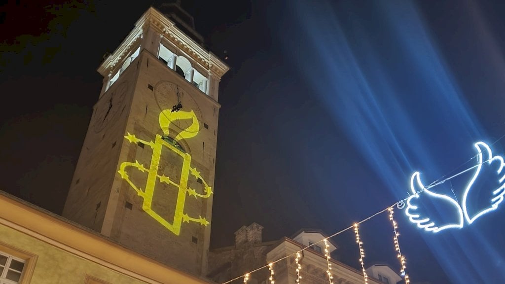 La “candelina” di Amnesty International proiettata sulla Torre civica di Cuneo il 10 dicembre