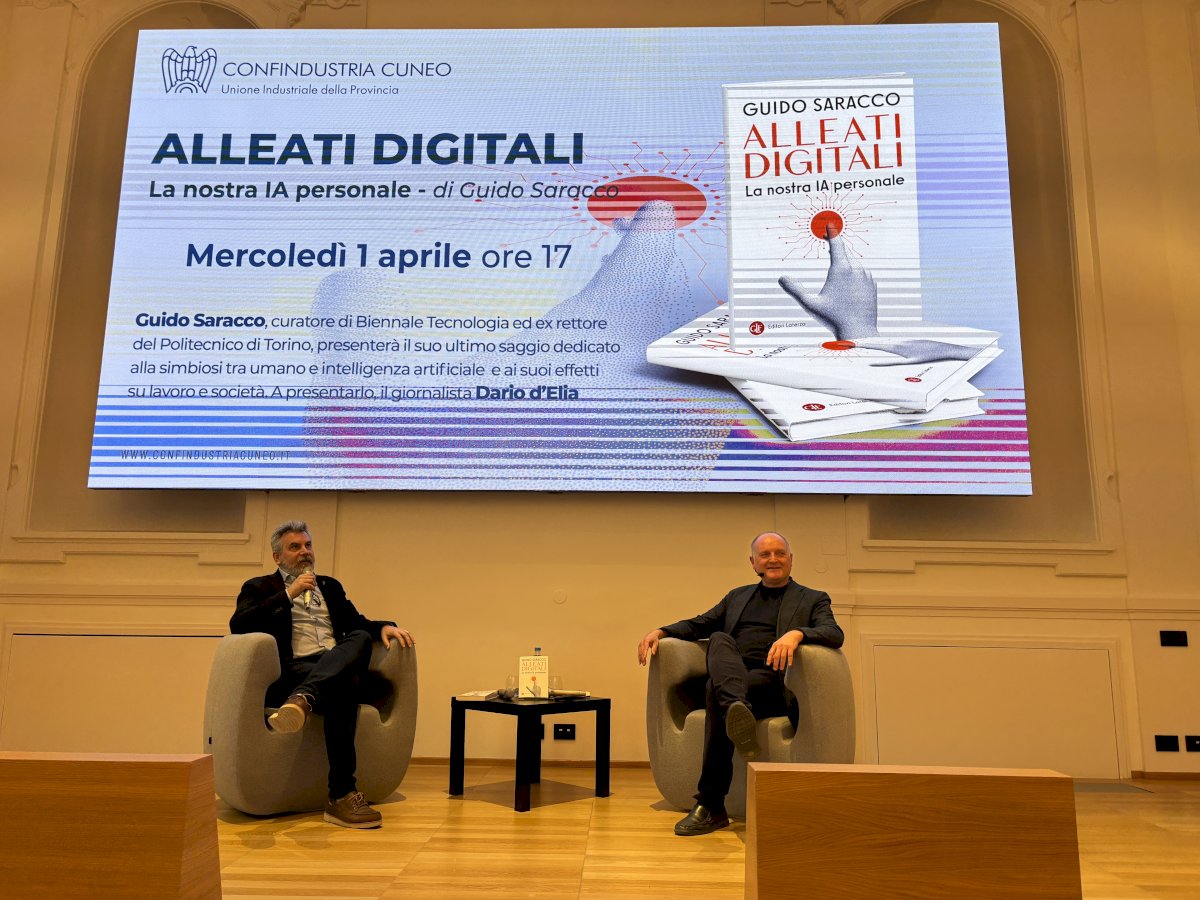 L'ex rettore del Politecnico di Torino ospite della sede cuneese di Confindustria: "Dobbiamo chiederci cosa vogliamo fare di questa tecnologia straordinaria"L’intelligenza artificiale è davvero un nostro alleato? A questa domanda prova a rispondere “Alleati digitali – La nostra IA personale”, il nuovo volume di Guido Saracco, già rettore del Politecnico di Torino e curatore di Biennale Tecnologia, presentato mercoledì 1° aprile nella Sala Ferrero di Confindustria Cuneo.