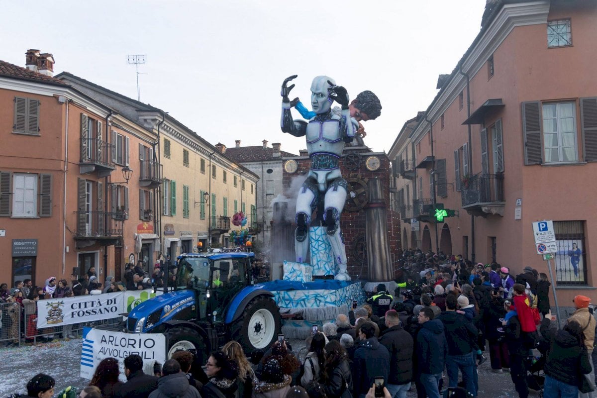 Vince di un’incollatura nel carnevale di Fossano il carro “retrofuturistico” di Racconigi, unendo la fantascienza a un sorprendente omaggio a Charlie Chaplin. L’accesa competizione con i secondi classificati di Scalenghe si risolve con due soli punti di scarto: i torinesi portavano in gara un’affascinante metafora dell’umanità attuale, intrappolata nelle spire di un “progresso” che non migliora la qualità della vita. Terzo, a sorpresa, un carro al suo esordio assoluto: quello degli Amis dei Coriandoli dell’oratorio di Verzuolo, animato da 170 figuranti vestiti di blu per rappresentare il mondo sottomarino.