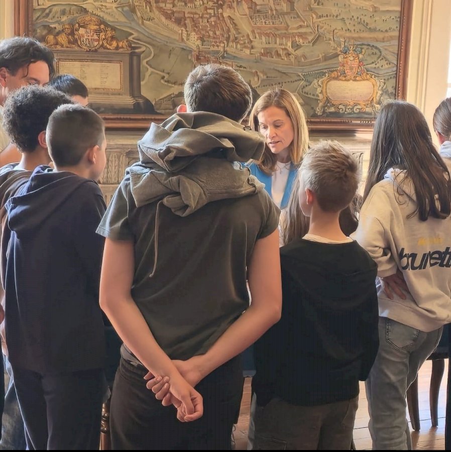 I 70 ragazzi e i loro insegnanti sono stati accolti sotto il porticato antistante il Comune dove Giorgio Gonella ha illustrato loro la storia, le peculiarità e le curiosità della “casa dei cittadini”. Un racconto tra passato e presente che ha rapito i giovani ascoltatori e li ha trasportati nel cuore della vita amministrativa.
