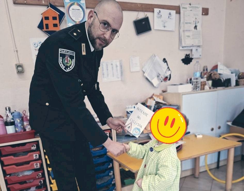 L'ispettore di Polizia Locale Alberto Roattino guida i bambini della scuola dell’infanzia in un laboratorio pratico sulla sicurezzaGiovedì 19 marzo, la scuola dell’infanzia di Torre Mondovì ha ospitato un’iniziativa speciale dedicata all’educazione stradale, pensata per introdurre i più piccoli alle regole della sicurezza in maniera pratica e divertente. L’incontro ha visto la partecipazione dell’ispettore di Polizia Locale Alberto Roattino, papà di uno degli alunni, che ha saputo coinvolgere i bambini con professionalità e simpatia.