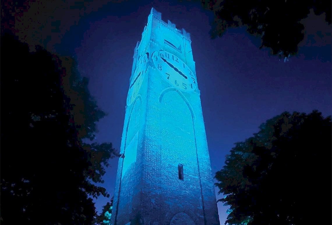 Mondovì illumina di blu la torre civica del Belvedere per le vittime civili delle guerre