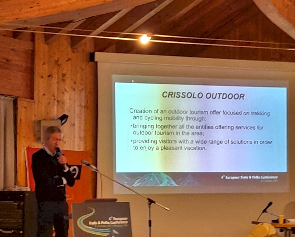 L’assessore Massimo Ombrello ha illustrato il progetto di promozione turistica digitale delle attività sportive e ricreative all’aria aperta del ComuneIl Comune di Crissolo ha partecipato alla “4th European Trails and Paths Conference”, che si è svolta da venerdì 10 a domenica 12 ottobre a Macugnaga nel Verbano-Cusio-Ossola, presentando il portale Crissolo Outdoor. La presentazione, fatta dall’assessore Massimo Ombrello, si è svolta venerdì 10 ottobre davanti a una platea di circa 50 partecipanti provenienti da tutta Europa ed è stata inserita in una sessione di lavoro intitolata “Strategie digitali per un turismo escursionistico responsabile: l’uso di piattaforme e app da parte di comuni e PMI per gestire l’accesso ai sentieri, coinvolgere i visitatori e promuovere uno sviluppo territoriale sostenibile”. L’intervento, che ha riscosso grande interesse, si è collocato nello spazio a disposizione del progetto “Villaggi Montani - The Mountain Villages Project”, gruppo di cui Crissolo fa parte ed emanazione del progetto internazionale dei Villaggi degli Alpinisti dei CAI, a cura dei referenti Alberto Ghedina e Barbara Foggiato.