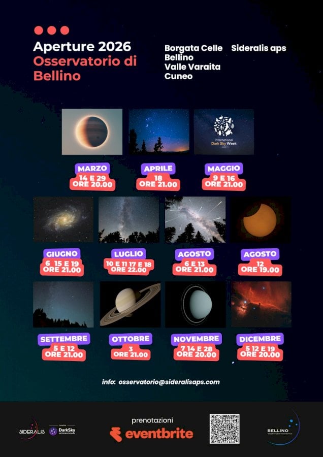 Le serate sono state progettate per seguire i principali fenomeni celesti, alternando l'osservazione dei pianeti a quella degli sciami meteorici e degli oggetti del profondo cieloDopo un 2025 di sosta forzata, l’Osservatorio astronomico di Bellino torna pienamente operativo. L’associazione Sideralis APS annuncia ufficialmente la ripresa delle attività e presenta il calendario delle aperture per il 2026, un anno che segna un nuovo inizio per la struttura di Borgata Celle, in valle Varaita.